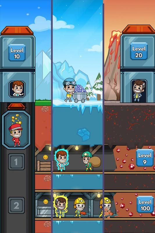 美式卡通画风:清新明亮的色彩搭配和Q版角色设计,让挖矿这种硬核主题变得轻松有趣。丰富矿藏系统:从普通矿石到稀有宝石,每种资源都有不同的价值策略。自动化管理:雇佣主管释放专属技能,比如加速采矿或提升运输效率,减少手动操作。全球矿场:解锁不同地区的矿洞,体验多样化的地理环境与特产资源。离线收益:无需时刻在线,挂机也能稳定积累财富。