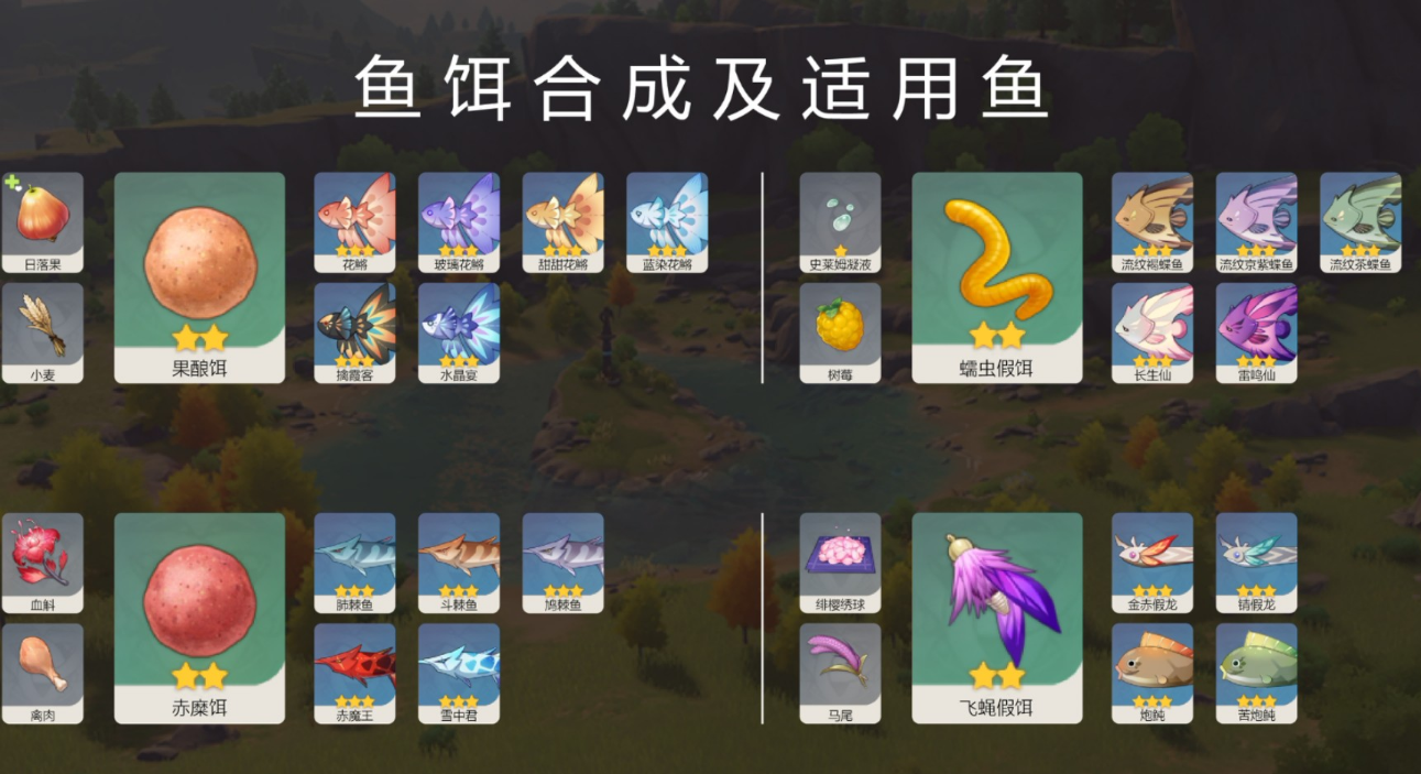 除了雷鸣仙,蠕虫假饵还能钓到其他品种的蝶鱼,分布在提瓦特各个水域。建议多准备些这种鱼饵,因为像兑换渔获这类强力武器时,需要消耗大量蝶鱼作为材料。平时路过史莱姆聚集地或树莓丛时顺手收集素材,就能保证鱼饵库存充足。