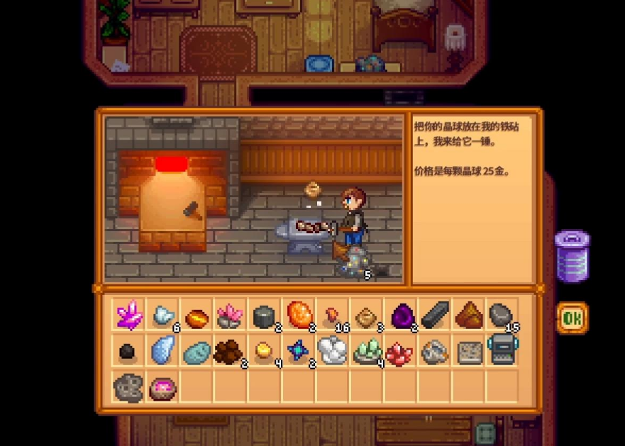 如果已经解锁了姜岛内容,一定要优先去火山第十层找锻造台。这里不仅能升级银河剑,还能给其他武器附加特殊效果。虽然木剑用不上这个功能,但了解这个机制对后期发展很有帮助。平时打怪时注意收集熔岩鳄鱼眼这类稀有材料,它们能在沙漠商人那里兑换魔法升级道具。