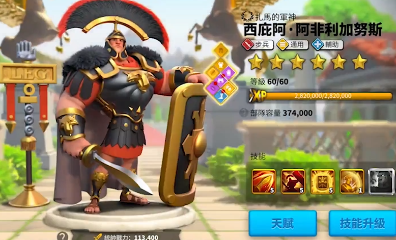 技能升级顺序推荐先点大招减伤,再点被动增伤和治疗,最后补满觉醒效果。西庇阿的核心优势在于部队容量加成,这让他在兵力对抗中占据优势。要注意及时更换残血部队,因为兵力越少重伤率越高,频繁换队能减少战损。虽然西庇阿后期强度有限,但前期培养成本低,能帮你平稳度过开荒阶段。