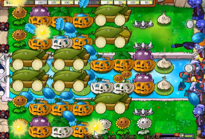 阳光管理是维持无尽模式持久战的关键。建议在泳池第七列和陆地最后一列种植双子向日葵,这些位置相对安全且能持续产出阳光。当阳光储备达到8000以上时,可考虑将部分向日葵替换为玉米加农炮以增强火力。需吸金磁的合理使用能显著提升经济效率,建议放置于水路第六列,既不影响防御又能覆盖全场金币收集。阳光的合理分配应优先保证玉米加农炮的冷却循环和南瓜套的及时修补。