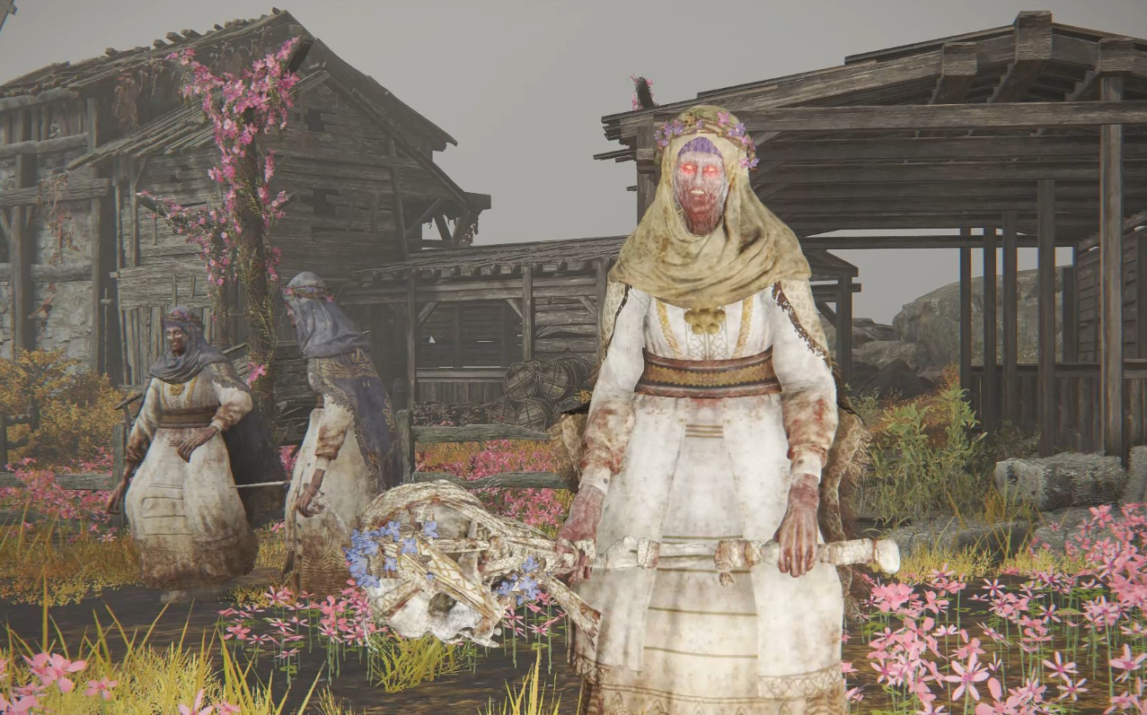 风车村的居民行为与剧情设定紧密相关。他们的舞蹈并非自发,而是受腐败病影响,身体无法自控。这种设计借鉴了历史中麦角菌中毒的症状,但游戏将其与黄金树时代的诅咒结合,赋予更深层的叙事意义。村庄的违和感源于场景与行为的冲突——明媚的风车与扭曲的舞姿形成强烈对比,强化了玩家对世界观黑暗本质的认知。