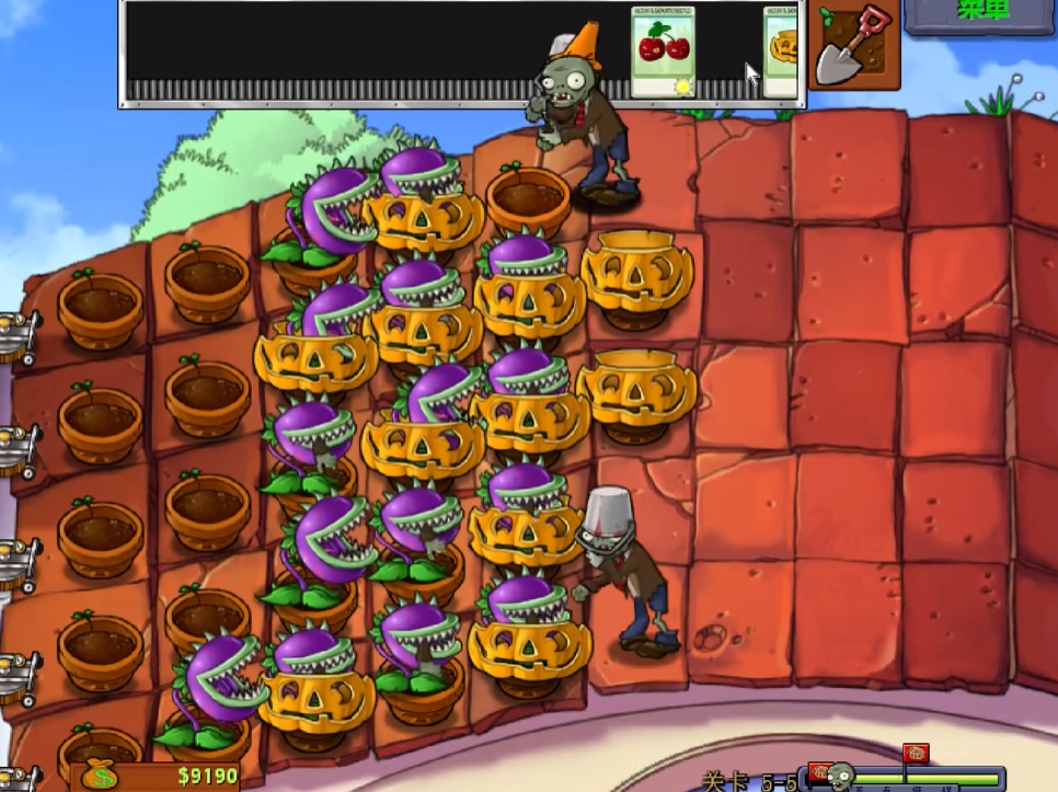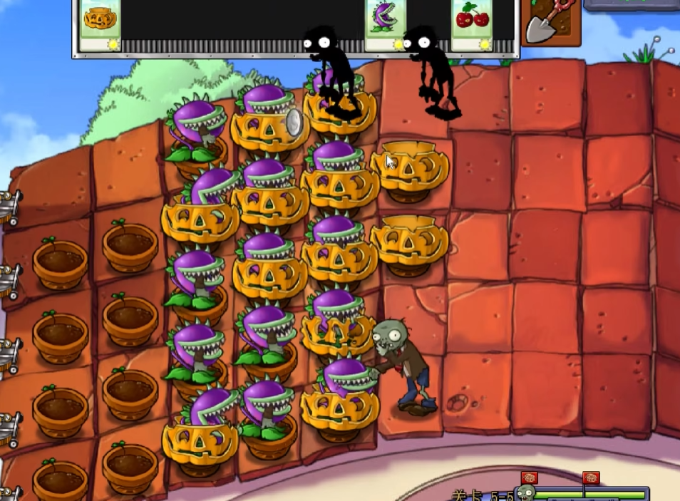 关卡末尾的僵尸博士战需特别注意其召唤技能与火球攻击。豌豆许愿池的持续输出能力在此阶段尤为重要,建议提前在第三列与第六列各部署两株。当BOSS释放火球时,立即使用寒冰菇中断其施法,同时用阳光向日葵快速补充消耗的资源。