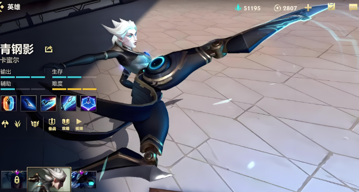 青钢影卡蜜尔以精准的战术切割能力著称,二段Q的真实伤害能有效克制坦克英雄。核心出装三相之力与死亡之舞奠定输出基础,血手与复活甲保证切入后的生存能力。独特的墙体钩索机制赋予其极强的地形跨越能力,战术横扫的范围减速与护盾回复效果,使其在换血中占据优势。大招海克斯最后通牒的不可逃脱领域,能完美限制敌方核心输出。需被动自适应防御的护盾类型会根据主要伤害来源自动切换,这是对线期换血的重要资本。