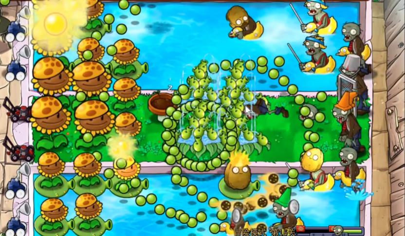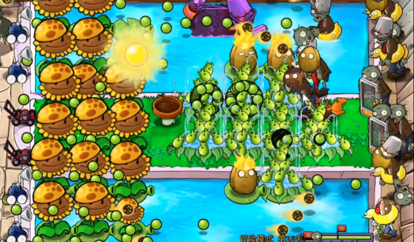 要顺利通过植物大战僵尸第15关,关键在于合理搭配植物阵容和掌握阳光管理技巧。推荐使用向日葵炸弹、火炬坚果、土豆雷、寒冰香蒲射手、大蒜花、双发仙人掌等植物组合,这些植物能形成攻防一体的布局。开局阶段应优先放置阳光向日葵积攒阳光资源,为后续战斗做准备,同时在前排布置土豆雷防御早期出现的铁桶僵尸,这种基础防御能有效延缓僵尸推进速度。