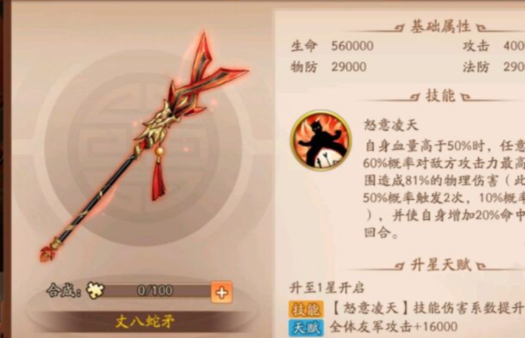 赤金关羽作为蜀国阵营的核心输出武将,最佳神兵选择为丈八蛇矛。该神兵能显著提升关羽的命中率与生存能力,尤其在血量高于50%时可触发强力神兵技能,使其在战场上保持持续输出。丈八蛇矛的免伤和续航效果完美契合关羽的武圣Buff及免疫控制特性,形成攻守兼备的战斗体系。若暂时未获取丈八蛇矛,可选用龙胆亮银枪作为过渡,但其群伤增益较难完全发挥关羽的斩杀优势。