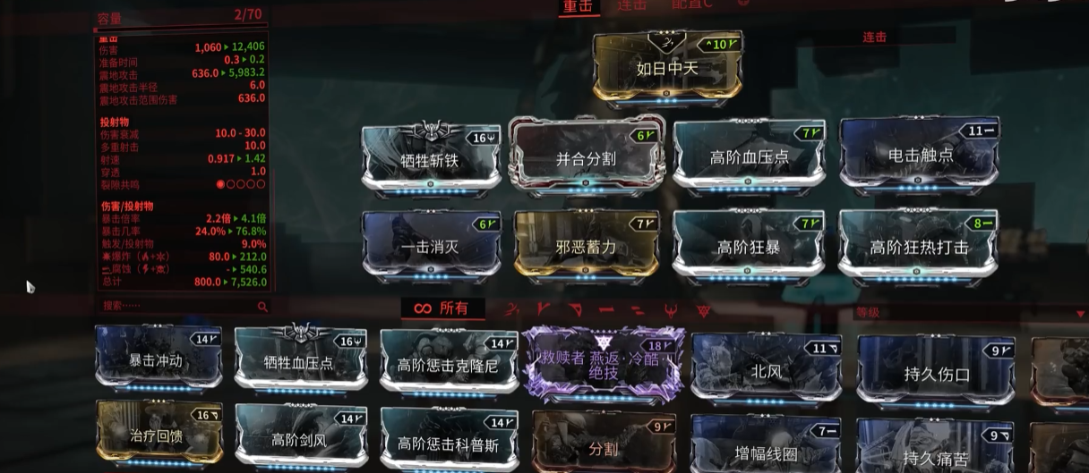 从战斗表现来看,圣装救赎者的核心优势在于混合攻击模式。近战架势动作可触发高倍率伤害,而枪械射击则能快速清场。配卡方面,建议优先堆叠触发几率至100%,搭配状态超载等MOD以强化异常状态收益。若追求爆发输出,可选用腐蚀或病毒元素组合,针对高护甲目标效果显著。狂暴Prime等攻速MOD能显著改善手感,而范围类MOD则能提升霰弹射击的覆盖面积。