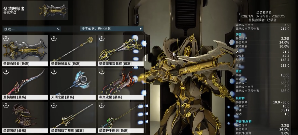 圣装救赎者是星际战甲中枪刃类武器的圣装版本,结合了近战与远程攻击特性,其独特的双枪管设计和高爆发伤害使其成为中近距离作战的优选武器。该武器的基础伤害以切割属性为主,配合较高的触发几率,能有效应对各类敌人。攻击速度适中,可通过MOD进一步提升输出频率。需其射击机制采用霰弹枪模式,弹片分布影响实际命中效果,因此对走位和瞄准有一定要求。