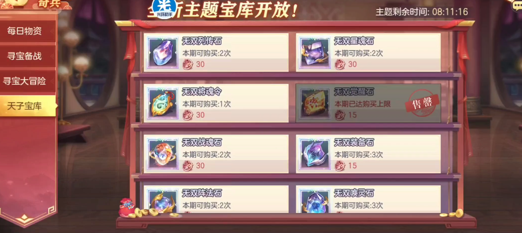 常规获取方式中,天尊副本是核心来源。玩家每日可组队或单人挑战不同层数的天尊,击败后有概率掉落无双战魂石。高层数副本如天尊7层以上,掉率显著提升,但需队伍战力达标。另一稳定渠道是夺宝奇兵活动的天子宝库,每期可用30个寻宝奖章兑换2个无双战魂石,需优先完成活动任务积累奖章。战魂合成系统允许低星级战魂合成高星级,但无双战魂石无法通过此途径直接产出。