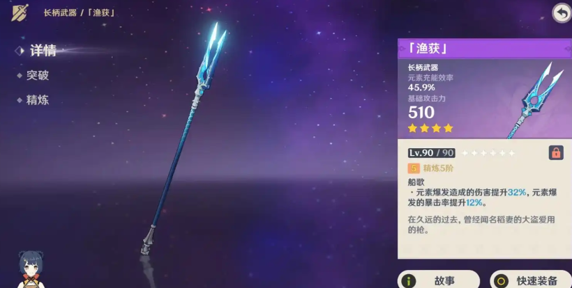 渔获是零氪玩家的首选武器,通过钓鱼系统兑换获取。其副属性提供45.9%元素充能效率,被动技能直接提升元素爆发的暴击率与伤害,完美契合香菱的脱手输出模式。锻造武器流月针则适合早期物理流派过渡,但需注意其被动效果对元素反应无加成,后期建议替换为充能或精通类武器。三星白缨枪可作为开荒期临时选择,精炼满级后普攻增伤效果显著,但受限于基础属性较低。