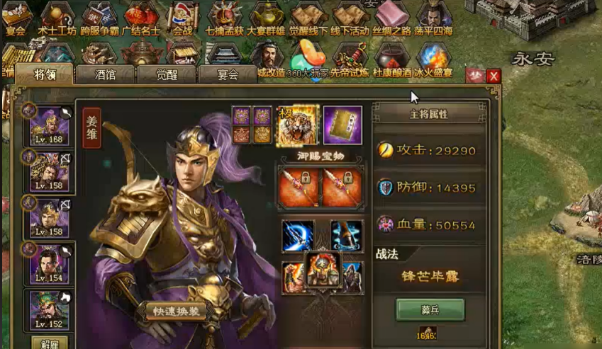 费耀副本是五丈原战役中的关键关卡,地形为平原,敌方主将拥有5排兵力,部将4排兵力,战法可攻击三排且能被抵挡。通关核心在于合理搭配武将阵容与装备,优先选择具备抵挡能力的武将。推荐阵容首位使用太史慈(朱雀套装),利用其战法抵挡第一部将技能;第二位关羽(真驱虎套装)负责清理残兵并为后续武将提供护罩;第三位姜维(凤凰套装)在护罩保护下释放战法;第四位马超(真烛龙套装)带副将周泰完成最终输出。防御型晶石需达到5级以提升生存能力。