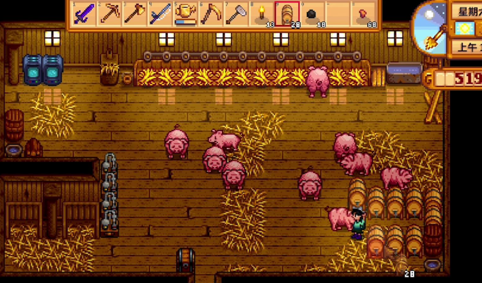猪猪的幸福度是怀孕的关键,所以每天都要好好照顾它们。早上记得给猪猪喂饱干草,如果没自动喂食器就得手动放饲料。别忘了摸摸它们,每天互动能提升好感度。畜棚也要保持干净,定期清理避免生病。如果猪猪心情好,豪华畜棚又有空位,它们就有机会自动怀孕啦。