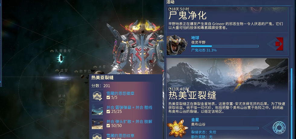 热美亚裂缝任务的核心奖励包括稀释的热美亚、活动分数以及各种稀有道具。稀释的热美亚是开启剥削者圆蛛(俗称二蜘蛛)战斗的重要门票,每次成功封闭裂缝后记得手动拾取。活动分数可以累积兑换并合膛线、并合肢解等强力MOD,以及奥堤克光子枪破坏者等武器。分数不会重置,下次活动还能接着用,所以不用急着一次性刷满。