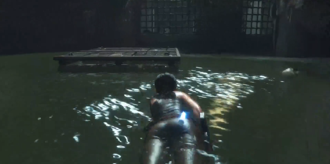 再次回到水闸处拉开开关注满水坑,从门洞游进木筏的房间,通过木筏跳上入口。利用绳索箭矢拉开内侧的木栅门,进入后会遇到更多变异人,清理完毕后来到水坑另一边拉动开关提高水位。站在木筏上用绳索箭矢将木筏和前方水车转轴相连,木筏会被拉近水车,靠近后跳上水车转轴所高台。这时候用绳索箭矢将右上方拉环和水车转轴相连,主要是为了引出两个变异人弓箭手,解决掉他们。