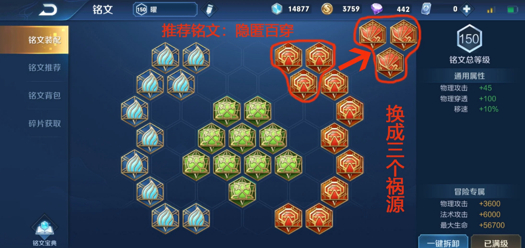铭文搭配方面,曜通常推荐使用百穿铭文组合,这套配置能最大化他的前中期威胁力。红色选择异变,绿色选择鹰眼,蓝色选择隐匿或狩猎,这样搭配可以提供高额的物理穿透、攻击速度和移动速度,让曜在游戏初期就具备致命gank能力。这套铭文的核心优势在于它兼顾了输出和机动性,确保曜在整局比赛中都能保持高额伤害输出。铭文的微调可根据实际情况进行,例如面对控制较多阵容时可适当增加韧性属性。