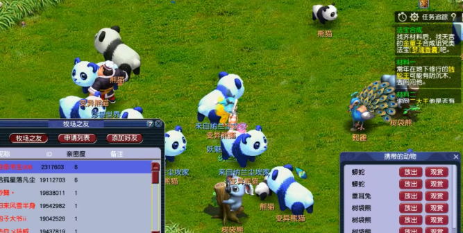 最直接的收益就是牧场积分。通过出售动物产出的物品(比如熊猫的竹叶)或者直接出售成年的动物,都能获得积分。这些积分可以在牧场管理员那里兑换储备金、修炼果等非常实用的养号资源。当你坚持打理,满足一定条件(如牧场好友多、连续拜访)后,还会有特殊事件光顾,比如动物采购员会随机来访,用现金高价收购你的成年动物,这比卖积分更划算;还有机会遇到黄金守护兽,可以用普通产出合成价值翻很多倍的高级产物。