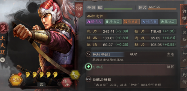 优化武将组合和属性分配能有效缓解盛气凌敌的负面影响,陆逊作为核心谋略输出,其自带战法火烧连营不受盛气影响,因此将他作为主将并优先保证智力属性可以稳定发挥伤害;程普的震慑控制能干扰敌方战法释放节奏,且统率成长较高能承受更多伤害;太史慈作为依赖普攻的武将,建议分配部分属性点至统率以增强生存能力,兵书选择胜而益强配合分险可提高持续作战效果,或考虑使用孙权替代,因为孙权的坐断东南增益虽仍需普攻触发,但相对不易被完全限制。