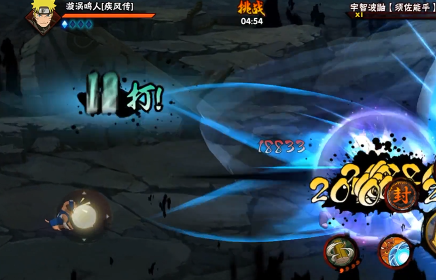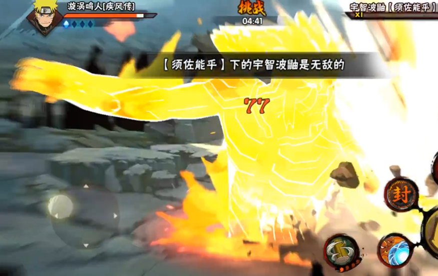 鼬会开启完全体的须佐能乎变得又大又硬。这时候他正面有个盾牌,能免疫所有来自正面的攻击,所以咱们绝对不能站在他前面打。一定要利用位移技能或者快速跑动,绕到他的侧面或者背后去输出,这样打才有效。他还会用十拳剑横扫如果咱们被逼到地图边缘要特别小心这一招。