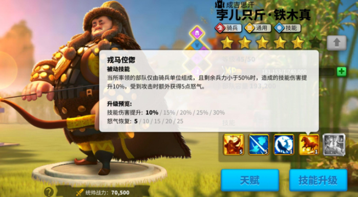 想让李成桂在战场上打赢,天赋加点是门大学问。他的天赋树主要有技能和弓兵两条线,主流且高效的加点是主点技能天赋,副点弓兵天赋,目标就是把他的技能伤害推到最高。技能天赋里那些能增加技能伤害、加快怒气回复的点都要优先考虑,这能让他更快、更频繁地放出大招。弓兵天赋则能进一步强化他带领的弓兵部队的攻击力,让输出更上一层楼。至于驻防系的天赋,除非你打定主意要用他专门守城,否则一般不建议点,因为他在野战场合下那些天赋用处不大。加点不是死板的,如果你特别喜欢玩弓兵流派,在点满核心技能天赋后,适当多倾斜一些点数到弓兵线上也是可以的。总之一切都是为了让他那个毁天灭地的AOE技能炸得更爽。