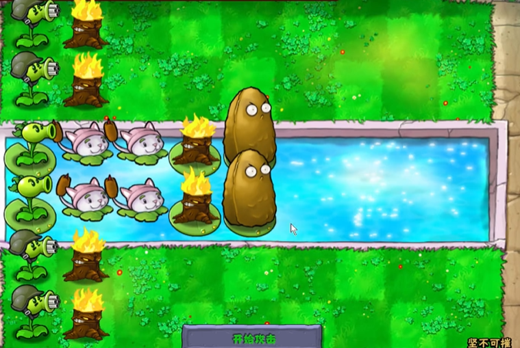 通关的关键在于合理的初始布局和植物搭配,最经典且简单的战术之一是使用双发射手配合火炬树桩,再搭配高坚果,双发射手通过火炬树桩后射出的火球伤害翻倍,能快速解决铁桶僵尸,而前排的高坚果则负责阻挡僵尸推进,另一个有效选择是冰西瓜投手,它的范围减速效果可以控制全场僵尸的移动速度,为其他输出植物争取时间,水路防御压力较大,必须携带荷叶,并建议优先完善这两行的防御。