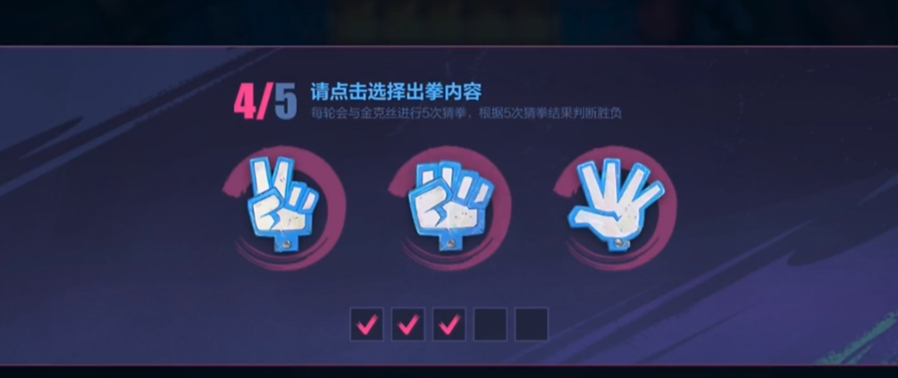 想要提高胜率,可以选择首次出拳后,针对系统出拳进行连续克制,并在最后一局反其道而行之的策略。就是第一回合可以随意出拳,然后观察系统第一回合出了什么。接下来的第二、三、四回合,你都选择能够克制系统第一回合手势的选项。到了关键的第五回合,则选择被系统第一回合手势所克制的那个选项来出奇招。这套方法的核心逻辑在于,系统似乎存在某种基于玩家上一次选择的出拳倾向,利用这个倾向进行连续压制,并在最终回合出其不意地转换,常能取得较好的效果,比完全随机或交给系统代打更有机会赢得多个回合的胜利。
