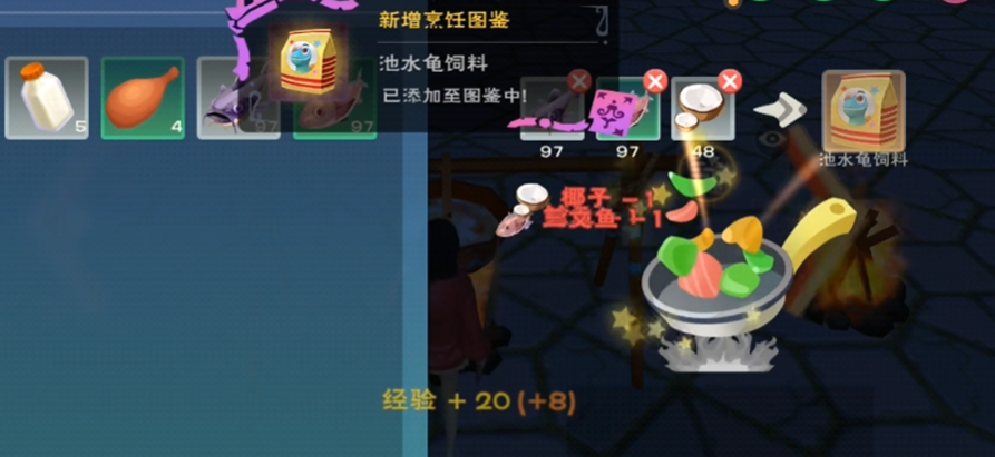 收集齐材料后,就可以开始制作饲料了。在游戏中找到或放置一个烹饪锅,与其交互打开烹饪界面。将一份三文鱼和一份鲶鱼放入烹饪锅的材料栏中,然后点击开始烹饪或制造按钮,一份水池龟饲料就制作完成了。烹饪锅支持批量制作,可以一次性放入多组材料来提高效率。