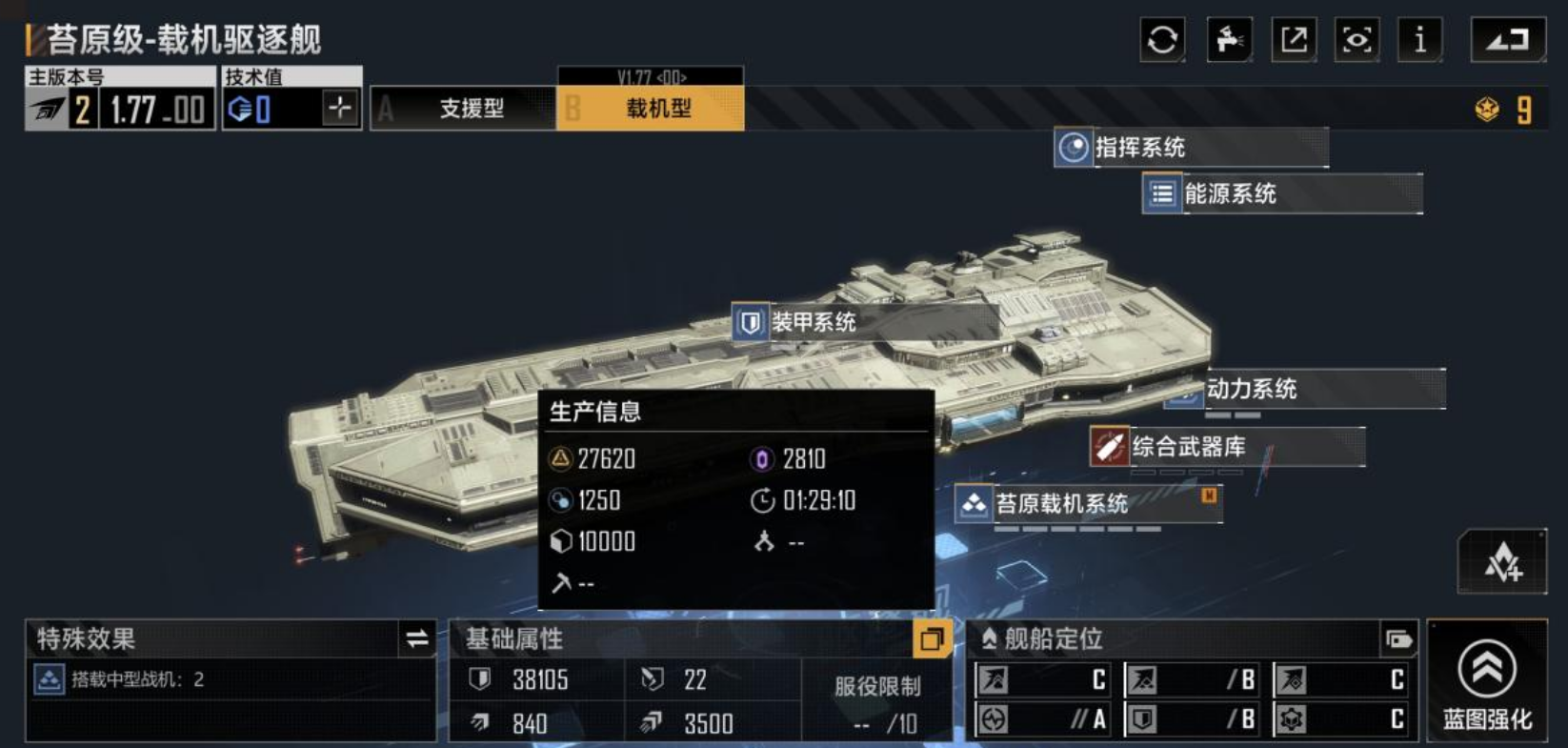 驱逐舰载机是个需要仔细研究的玩法,尤其是苔原载机驱逐舰这类特殊型号。它不仅能搭载战机,还能给战机提供命中率和闪避率的双重增益,效果比普通载机舰更强。不过它的初始速度比较慢,需要额外加点提升机动性,载机系统最好也优先强化,否则实战效果可能和普通载机型拉不开差距。