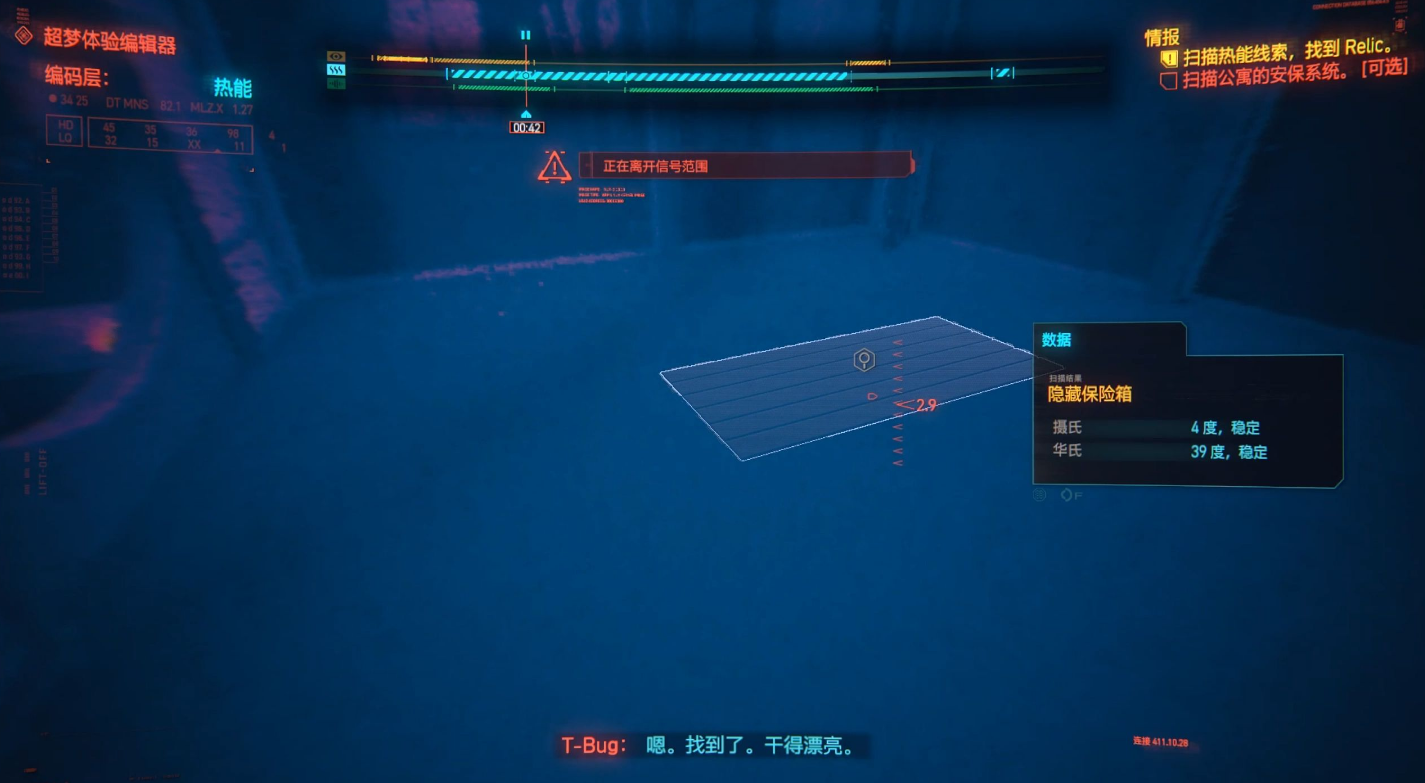 在超梦环节中,玩家需要熟练掌握编码层的切换技巧。音频层需重点扫描赖宣的通话记录,视频层则要检查房间内的报警器、摄像头和床头的抽屉。红外层最关键,必须按照00:38时间节点定位到窗边角落的冷冻器,这是存放Relic芯片的核心线索。扫描过程中需注意分轨上加粗的时间段提示,遗漏任何线索都会影响后续剧情发展。完成超梦后,玩家将获得关于荒坂家族内部矛盾的重要信息。