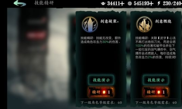 在精研技能的选择上,建议优先考虑核心输出技能的强化。比如剑意凝聚和剑意燃烧这类高伤害技能,精研后能进一步提升AOE范围和伤害倍率。对于依赖连招的玩家,可以优先选择减少技能冷却的精研选项,这样能更快地衔接技能链,打出流畅的连击效果。