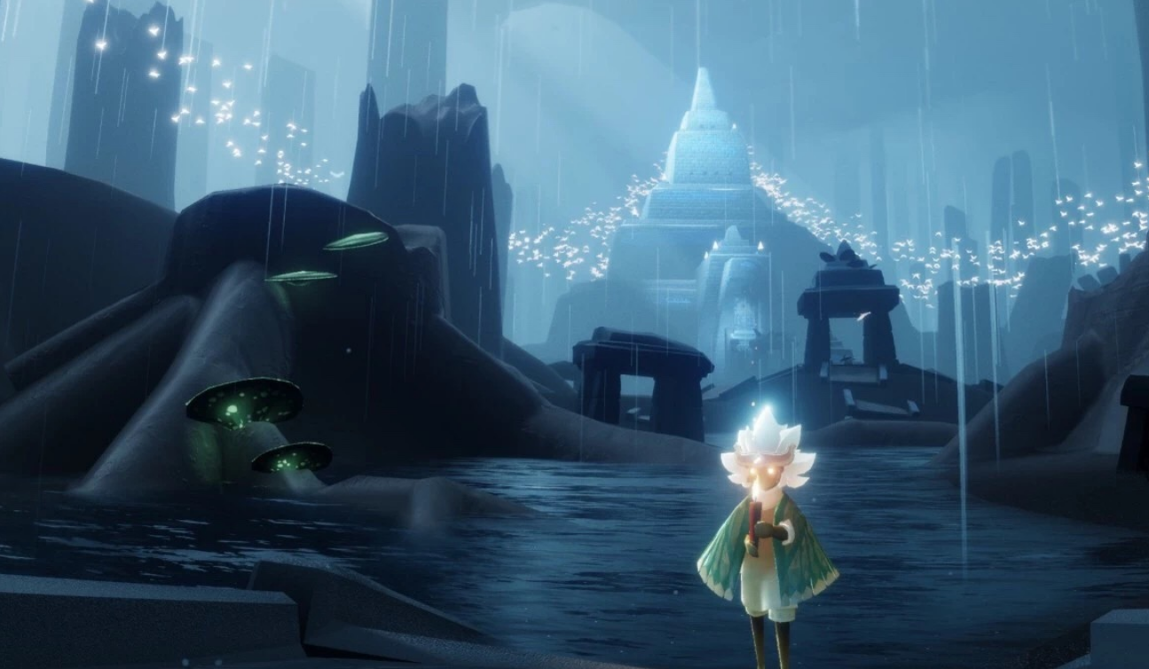 雨林的雨水会消耗能量,记得多靠近光源或者云朵恢复,这样飞起来更轻松。跑完雨林别忘了去终点神殿,点亮蜡烛召唤水母,踩着它们就能飞上去。神殿里的黑暗植物烧干净后能拿额外烛火,还能解锁通往霞谷的通道。
