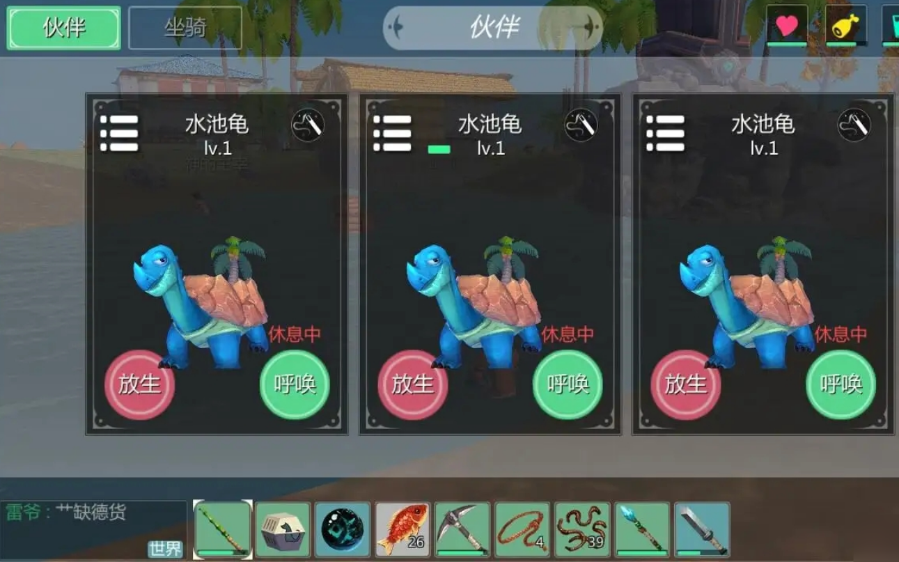 捕捉龟类宠物时,饲料的消耗量因种类而异。普通海龟通常需要5包饲料即可捕捉,而水池龟或熔岩龟可能需要13-14包。玩家在准备饲料时应预留一定余量,以确保捕捉成功率。龟类宠物在战斗中具备一定的防御能力,适合作为前期过渡宠物使用。