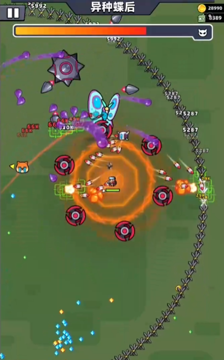 28关的核心思路是围绕秒杀机制和技能组合展开。这一关会出现大量蝴蝶类敌人,它们的毒球攻击范围广且持续伤害高,建议优先选择自动追踪类武器如苦无或追光者,搭配守卫者和足球形成基础防御体系。时尚手套的秒杀效果在这里特别实用,能快速清理小怪和精英怪,记得重点升级主武器的攻击范围和攻速属性。
