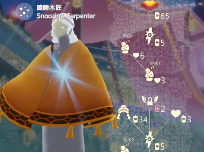 玩家需先进入墓土,向右上角飞行至遗忘方舟,在破船的船头或船尾附近找到该先祖。点燃先祖后需完成运火任务,难度较高,需在船上反复运送光线,最终在领取魔法的位置点燃石像并观看动画,才能解锁兑换资格。兑换公主头需要34根白蜡烛,同时该先祖还提供黄色流苏斗篷、打瞌睡动作等物品。