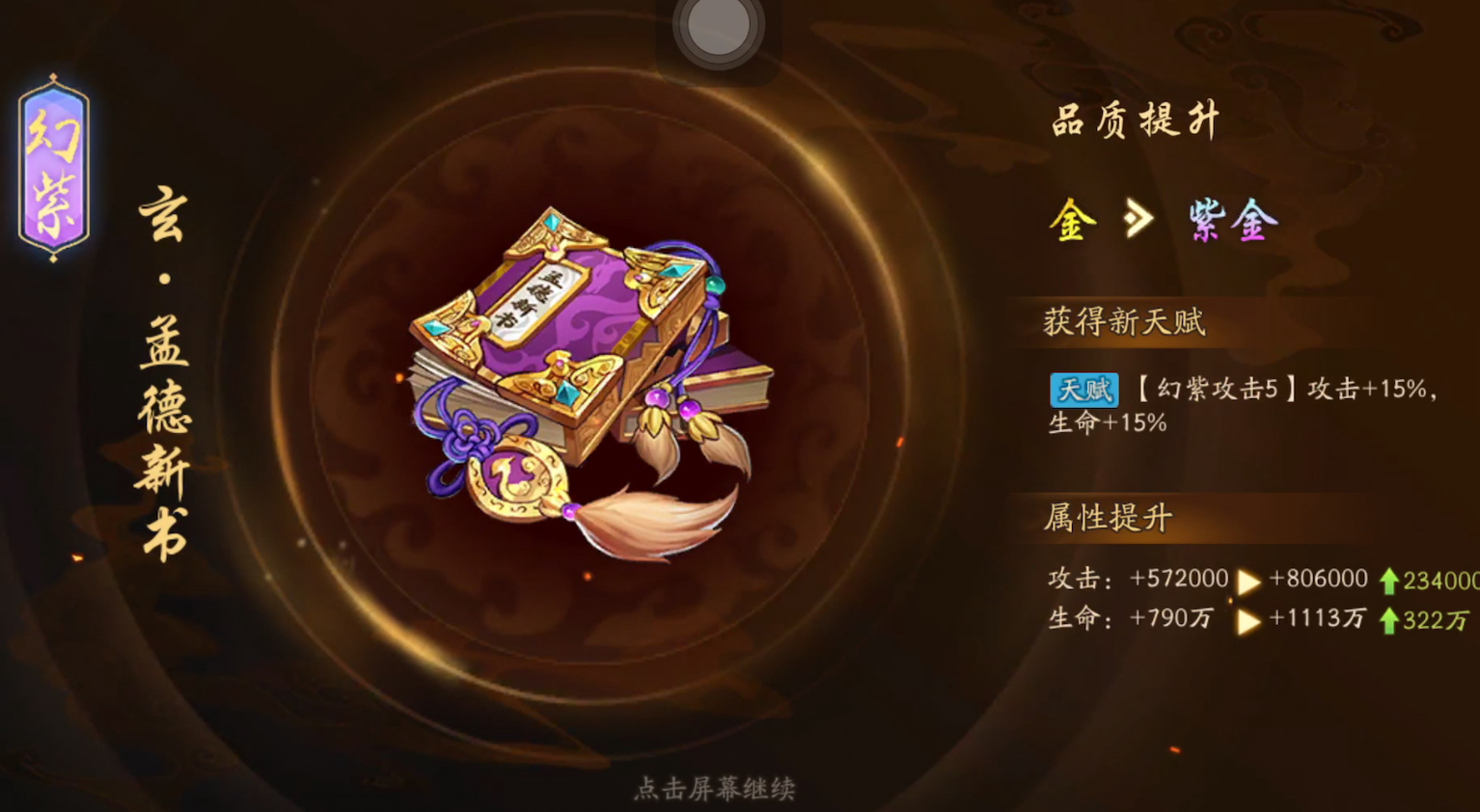 宝物幻紫是进一步提升幻紫武将实力的重要途径,需要消耗八卦幻紫石和四种类型的幻紫符。宝物幻紫可以显著提升武将的基础属性,不同宝物类型幻紫后加成的属性也有所侧重。虽然资源消耗较大,但通过心愿商店和定军山玩法可以稳定获取所需材料。宝物幻紫与升金并不冲突,玩家可以根据自身资源情况选择优先顺序。幻紫武将在少年三国志2中占据重要地位,获取和培养需要一定策略和资源规划。了解各幻紫武将的特性,掌握获取途径,合理搭配阵容并持续强化,是充分发挥其战力的关键。