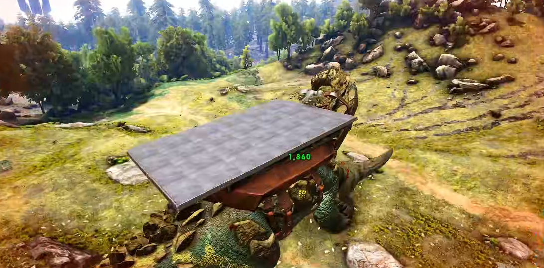 最后泰坦龙全地图随机刷,但南方绿色方舟附近的平原概率更高。如果遇到它卡在凹槽里,算是走运,直接用巨兽门堵住出路就能轻松驯服。要是它到处溜达,那就得靠风神翼龙引它到合适位置。驯服它更多是为了临时用用,比如拆家或者当个移动堡垒。