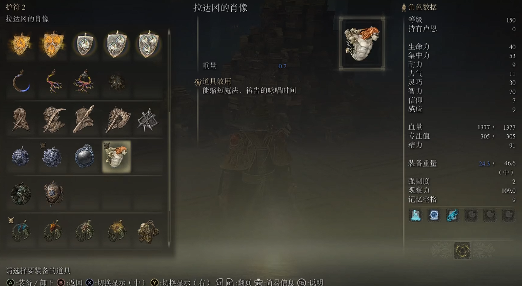 装备选择上,陨石杖和死王子杖是常用武器,前者适合前期后者后期更强。护符推荐魔法师块和魔法师球提升伤害,黄金树恩惠增加续航。水母盾的增伤效果对BOSS战很有帮助,记得把力量加到20点才能装备。如果想尝试信仰流派,250级后可以转投死王子杖并开始加信仰。