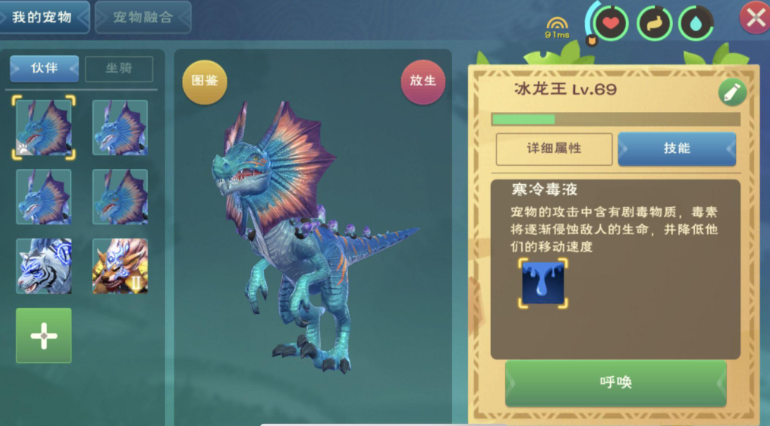 冰龙王作为综合性能优异的宠物,其寒冷毒液技能附带中毒和减速双重效果,在危险区域钓鱼时能有效控制敌对生物。虽然获取难度较高,但2500的基础生命值和60级上限使其成为高端钓鱼玩家的选择。紫蝠龙则是相对容易获得的替代品,3000生命值和2000攻击力的基础属性也能提供不错的保护效果,适合中期玩家使用。