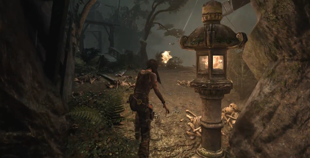 你需要找到狼巢的入口,它位于山中村落的坠机残骸附近。利用崖边的横杆跳向残骸,穿过机舱后继续向上攀爬,直到顶部。这里会提示附近有古墓,注意石壁上的白色箭头标记,它