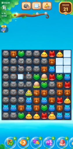 知道了麻烦在哪,接下来就是具体的行动思路了,核心就一句话:想尽办法把那两只大眼仔挪到滑道的正中间去。开局别急着到处瞎点,要把注意力完全集中在这个中轴区域。移动大眼仔的时候也要动动脑筋,尽量选择那些既能推着大眼仔往前移动,又能顺便组合出特效动物的步子。比如移动青蛙就有机会同时引发直线的消除特效,甚至有机会形成那个能消除全屏同色动物的魔力鸟。大眼仔本身也很厉害,它在滑道上每移动一步都会引发爆炸,清除周围的障碍,所以让它稳定地待在中间区域持续输出,是快速打开局面的关键。在推动大眼仔的过程中,顶上的那些冰块不用特意去消除,只要大眼仔多爆发几次,产生的连串爆炸就能自然而然地把它们清理干净。