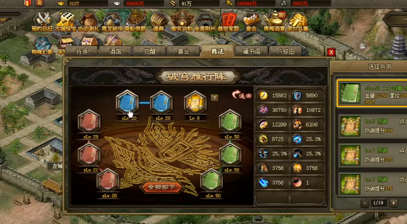 阵法书实际指的是阵法兵书,这是阵法系统中的一个核心组成部分。阵法系统在玩家角色等级达到210级并完成指定副本后解锁,它通过为武将配置不同的兵书来提供属性加成和特殊效果,是提升军队整体战力的重要途径。兵书并非独立存在,而是深度嵌入阵法框架内,其提供的增益效果与武将技能、兵种特性相互联动,共同构建起游戏的战术体系。