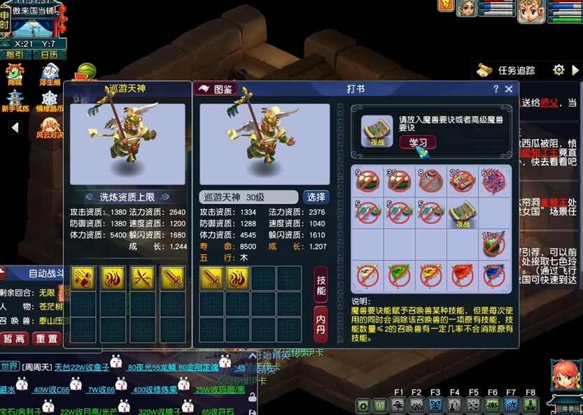 合纵宝宝的打书与搭配有明确思路,核心保留合纵、高级连击、高级必杀、高级偷袭、高级夜战等输出技能,根据格子数量补充高级敏捷、高级驱鬼、高级感知等功能性技能,五开阵容优先选择五只造型完全不同的召唤兽,确保全员满层合纵增益。单开玩家可在固定队中提前沟通召唤兽搭配,同样能稳定触发多层效果,超级合纵搭配超级否定、超级壁垒等技能,还能进一步强化生存与输出,适配帮战、华山等对抗场景,让召唤兽在输出与站场之间达到平衡。