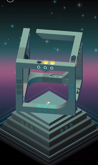 随后打开左上角按钮进入第三个空间,沿直线走到尽头踩下机关点亮第三座灯塔,关闭空间后再开启右下角按钮进入最后一个内部场景。该场景有多层可滑动平台,需要逐步调整平台高度,为乌鸦规划上行路线,让乌鸦抵达顶层触发最后一处机关,第四座灯塔亮起后,立方体外侧会出现总控开关。