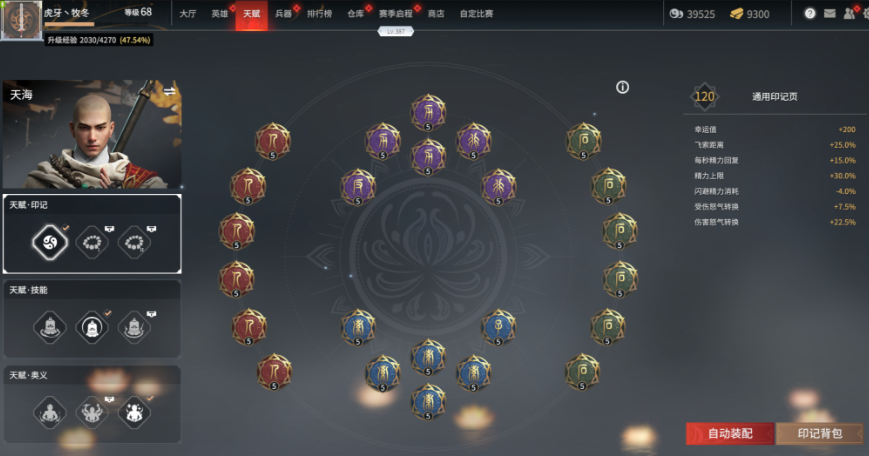 辅助续航天赋面向胡桃、殷紫萍等团队辅助英雄,核心围绕生存、续航与团队增益构建,绿色天赋保证基础机动与精力稳定,紫色天赋点满护甲回复、近程减伤,提升承伤与自保能力;红色天赋适当补充怒气,加快支援型奥义释放;蓝色天赋可选择幸运属性,提升武备匣与高品质魂玉获取概率,为团队提供更多资源。辅助天赋不追求单体输出,侧重持续作战、队友保护与阵地运营,搭配吐纳术、抽芯补天等续航魂玉,能在团战中稳定抬血、扛伤牵制,为队友创造安全输出环境,提升整体阵容容错与持续作战能力。