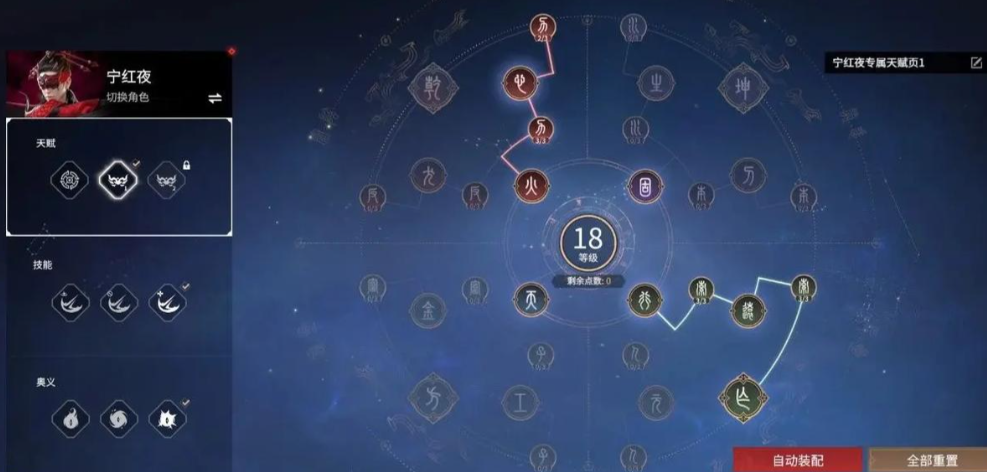 通用全能天赋为全场景最优解,绿色分支点满精力上限、精力回复与闪避消耗减免,保障连续闪避、闪步与连招衔接,避免因精力不足陷入被动;红色分支选择怒气回复与伤害转怒气,加快奥义积攒速度,让关键大招更频繁触发;紫色分支点亮霸体减伤与受击减伤,提升正面博弈与抗爆发能力,降低被连招秒杀的概率;蓝色分支补充技能冷却缩减,强化小技能循环与位移、控制频率。这套配置无明显短板,适配长剑、阔刀、横刀等主流近战,也能配合远程武器拉扯,单排稳生存、三排适配团队,新手与老手均可直接套用。