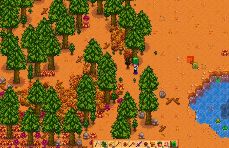 砍伐树木可获得木材,用于修复海边桥梁(需300木材),桥对岸的珊瑚和贝壳可直接出售。矿洞开放后,下矿挖掘矿石和宝石能带来额外收益,尤其是铜、铁、金等基础矿石。蚯蚓标记处用锄头挖掘可能获得古代种子或文物,捐赠博物馆后可解锁新内容。每日巡视地图边缘的灌木丛,采集野生产物如春季的野葱,可补充体力或出售。