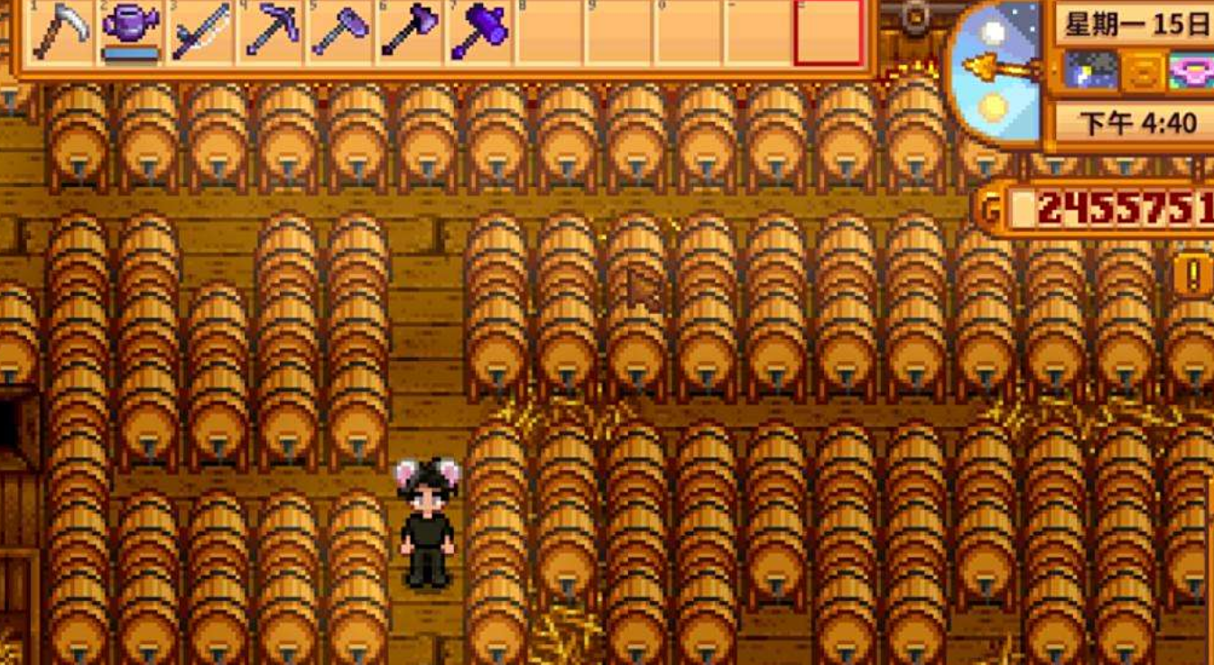 最后酒窖虽然好用,但前期解锁成本比较高,建议先稳定农场收入再考虑建造。平时多钓鱼、种高价值作物,或者下矿挖宝石卖钱,攒够金币再升级房子。酒窖建好后,记得优先酿啤酒或果酒,这些利润比较高,能更快回本。