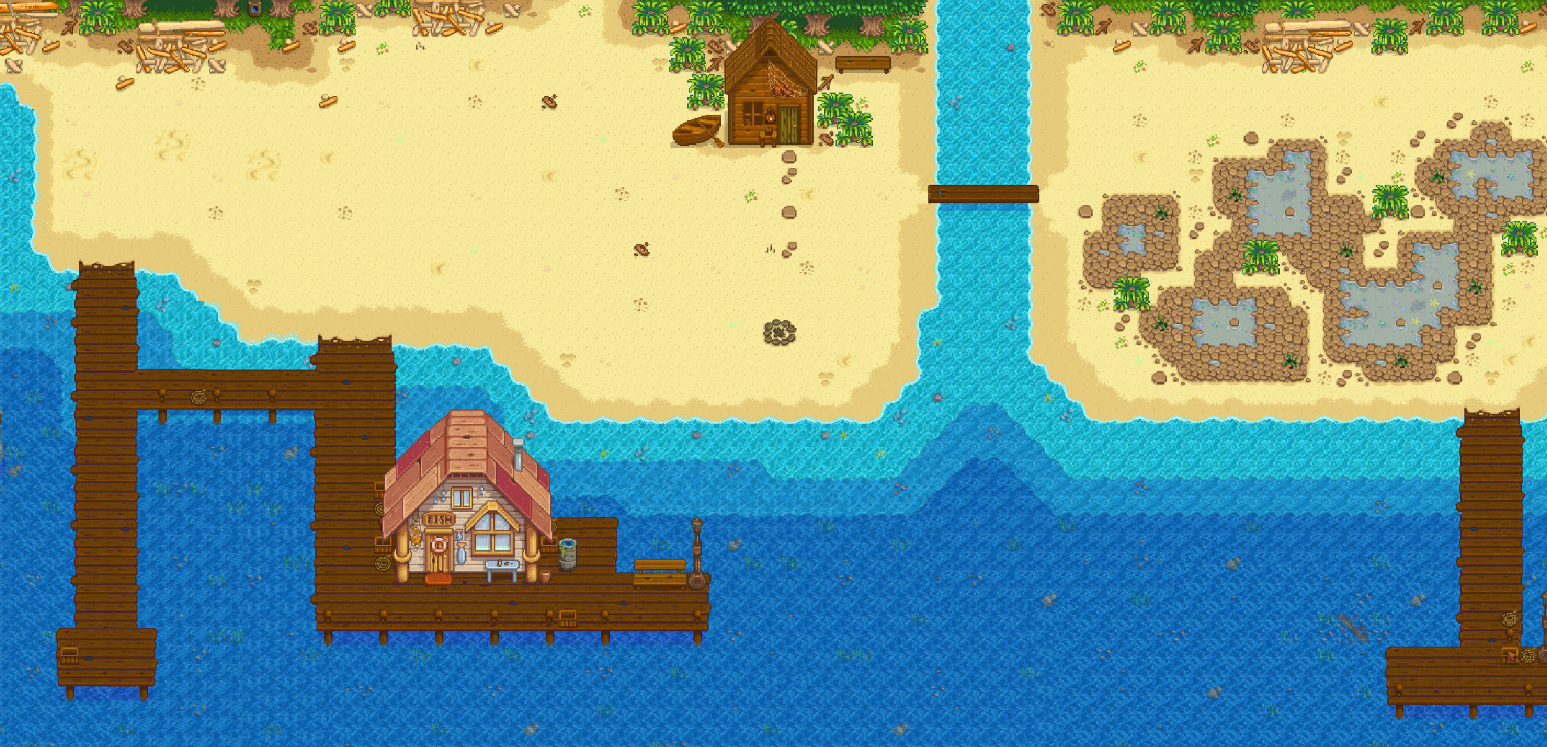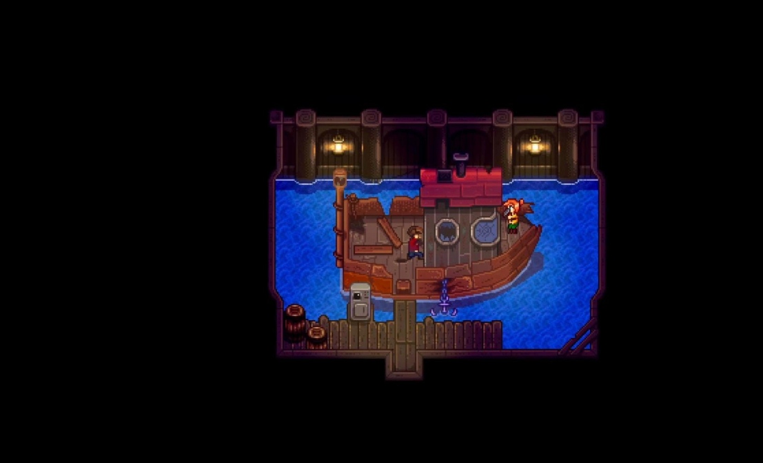 修复材料准备齐全后,与威利对话并交付所有材料。当晚睡觉时会触发修船剧情,第二天早晨会收到威利的信件确认船只已修复。威利的鱼店营业时间调整为上午8点至下午5点,玩家可以在营业时间内进入里屋,花费1000金币购买船票。购票后即可登船,经过一段航行后抵达姜岛码头。姜岛码头是初始登陆点,南岛位于姜岛的东南部区域。