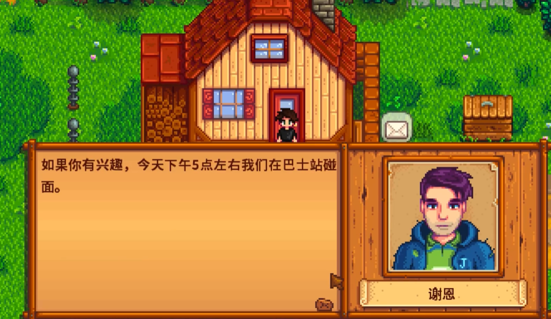 当你们的关系达到十颗心后,关键是要在早上6点到6点半之间离开家,这样会触发一段对话。谢恩会邀请你下午4点到6点之间在巴士站见面,一定要准时赴约哦。这个时间点很重要,错过了就得等第二天重新触发。建议提前调整好游戏内的时间,免得手忙脚乱错过了约会。