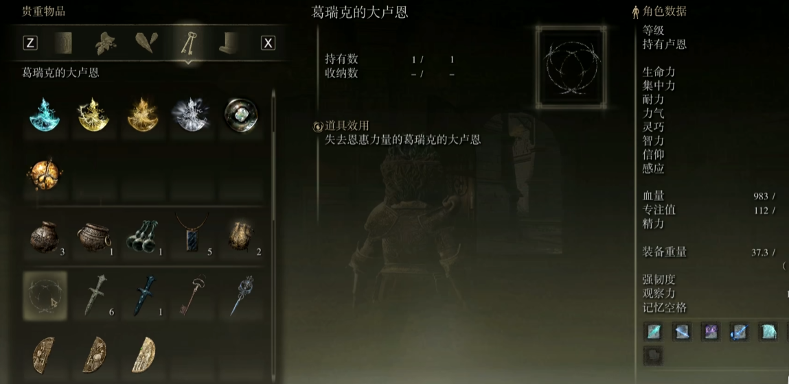 大卢恩是击败半神BOSS后获得的特殊道具,激活后能为角色提供强力增益。激活大卢恩需完成两个步骤:首先前往对应神授塔解锁大卢恩,随后在赐福点装备并使用卢恩弯弧激活效果。游戏中共有10个大卢恩,但实际只需激活6个,其中无缘诞生者的大卢恩(满月女王掉落)默认激活,用于洗点功能。