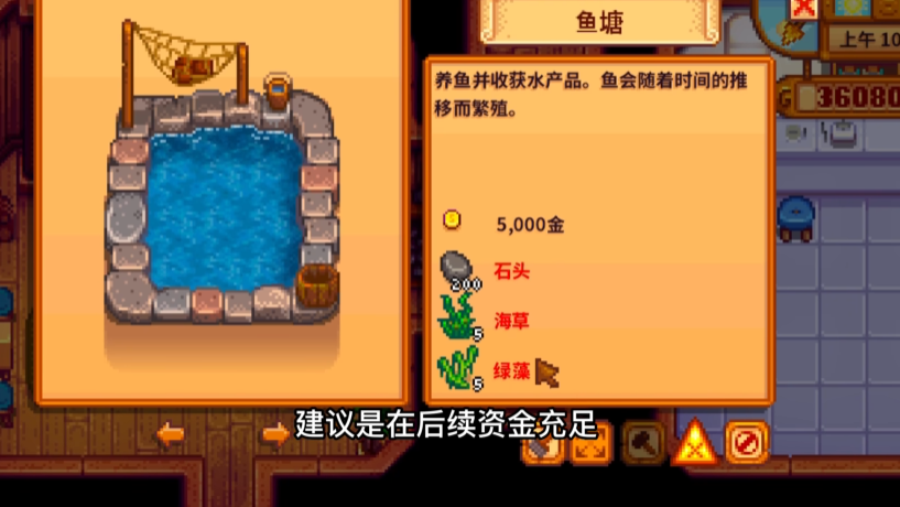 鱼塘是玩家获取稳定收入的重要设施之一。通过合理选择鱼种和优化养殖策略,鱼塘可以成为农场经济的有效补充。岩浆鳗鱼和鲟鱼是鱼塘养殖中收益较高的选择,前者因其基础售价高,后者则能产出高价值的鱼子酱。鱼塘还能通过完成繁殖任务提升容量,进一步增加收益潜力。